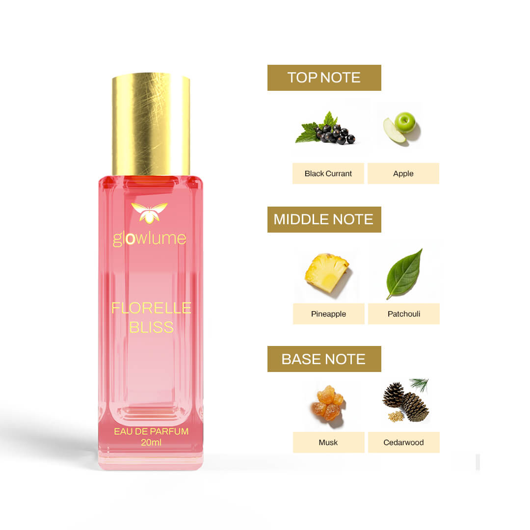 Introducing Florelle Bliss, a luminous and deeply captivating fragrance that celebrates the joy and complexity of modern femininity. This scent is an exhilarating blend of crisp orchard fruits, exotic sweetness, and a grounding, creamy wood base. It’s elegant, memorable, and effortlessly chic—your new signature for radiant days and enchanting nights.