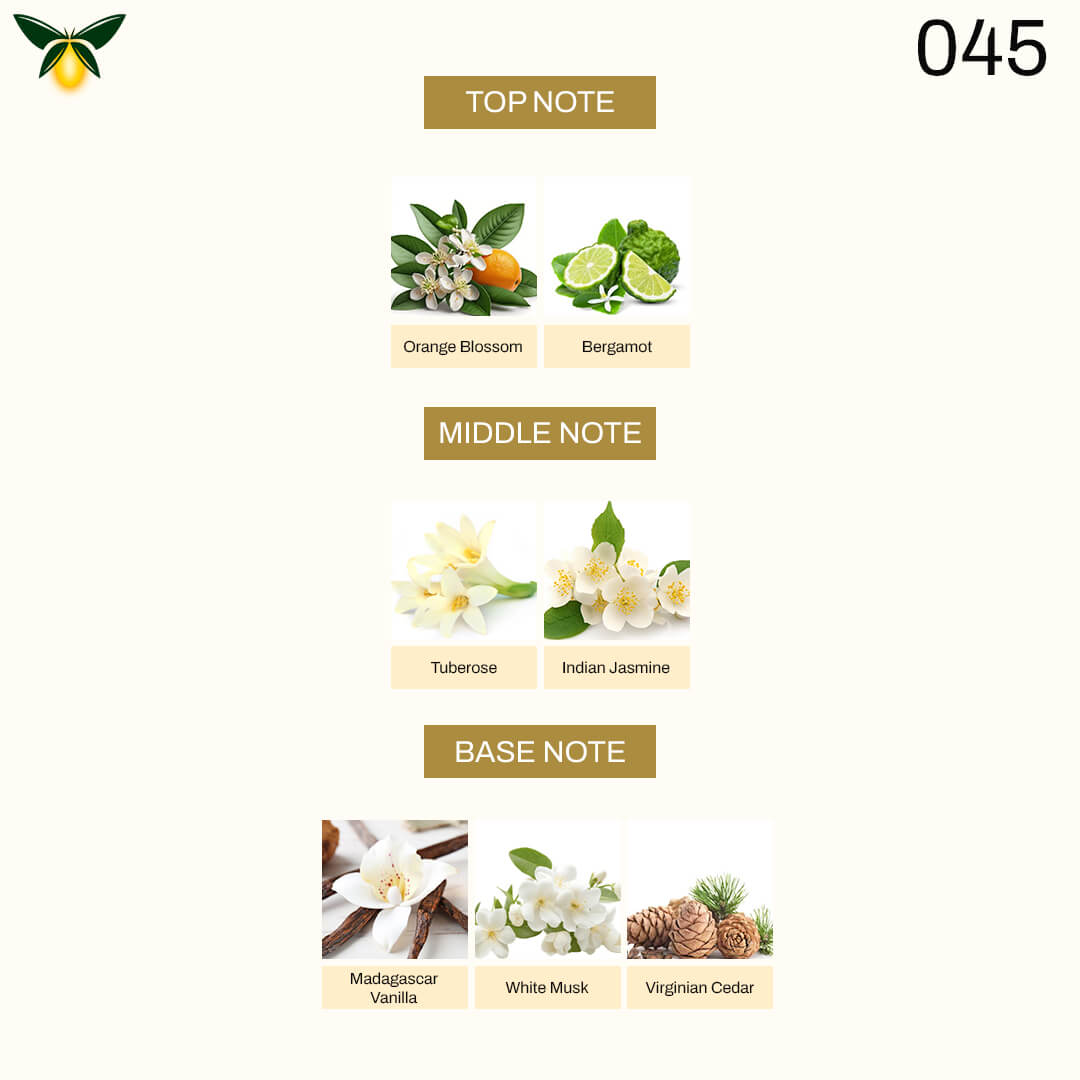 Base Notes: Madagascar Vanilla, White Musk and Virginian Cedar