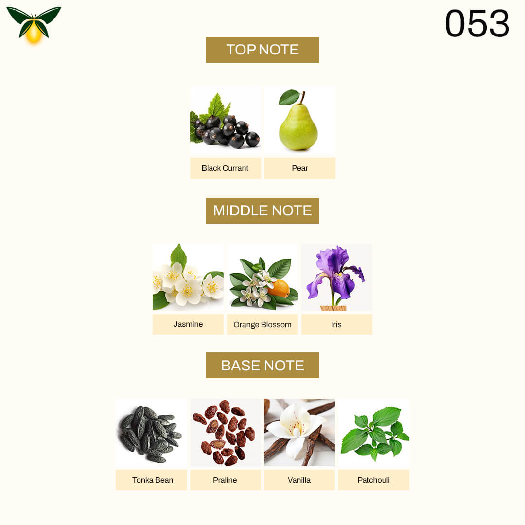 Base Notes: Praline, Vanilla, Patchouli, Tonka Bean