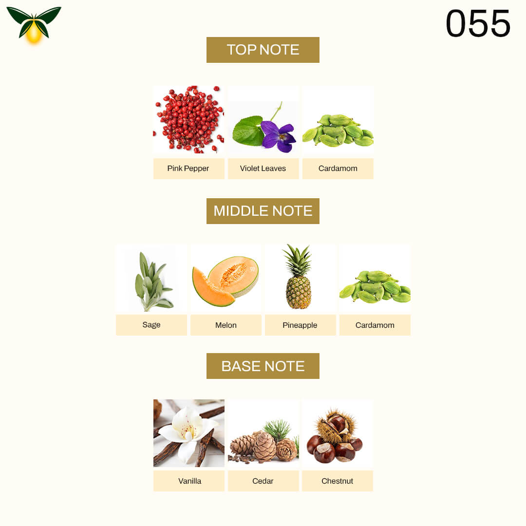 Top Notes: Cardamom, Pink Pepper, Violet Leaves