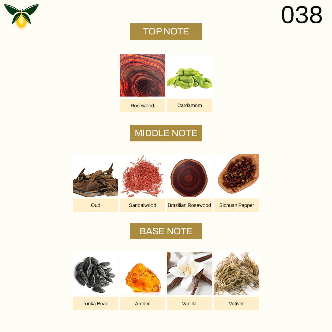 Middle Notes: Oud, Sandalwood, Brazilian Rosewood, Sichuan Pepper